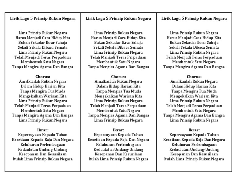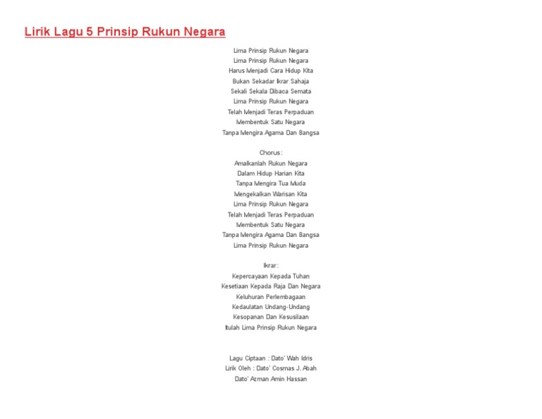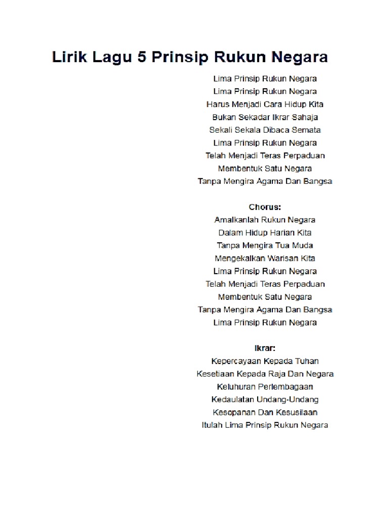 Lirik Lagu 5 Prinsip Rukun Negara Pdf